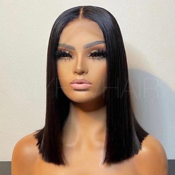 Wig Short Blunt Cut black Bob Closure Wig Straight hair 150% Density