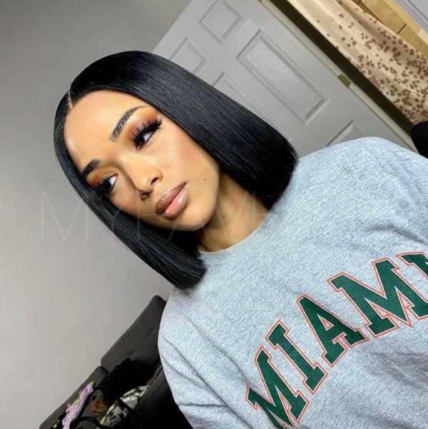 Perruque bob courte cheveux humain noir brésilien lisse couleur naturel de densité 150