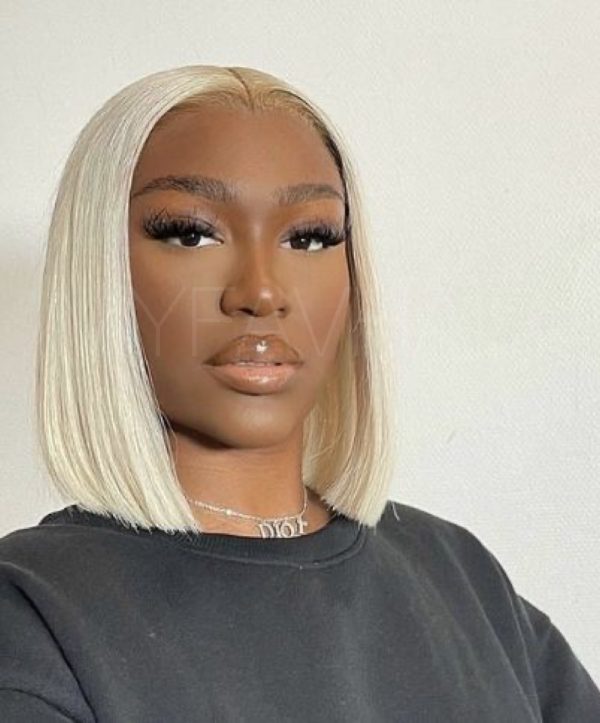 Perruque bob courte cheveux humain blond teinte 613 brésilien lisse de densité 150