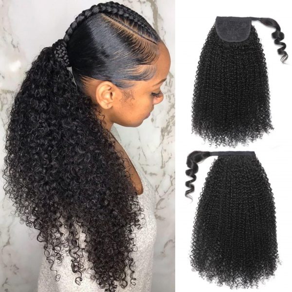 WEAR & GO CONCEPTION Ponytail Hair Extensions Human kinky curly hair wrap 180% Density