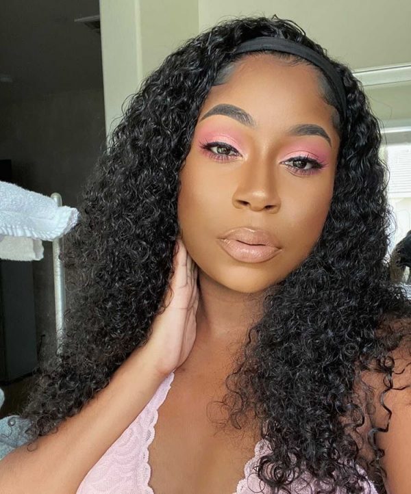 Curly Human Hair WigBand Virgin Hair Made Headband Wig 150% 180% Density