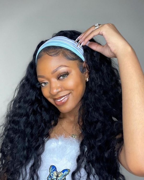 Water Wave Human Hair WigBand Virgin Hair Made Headband Wig 150% 180% Density
